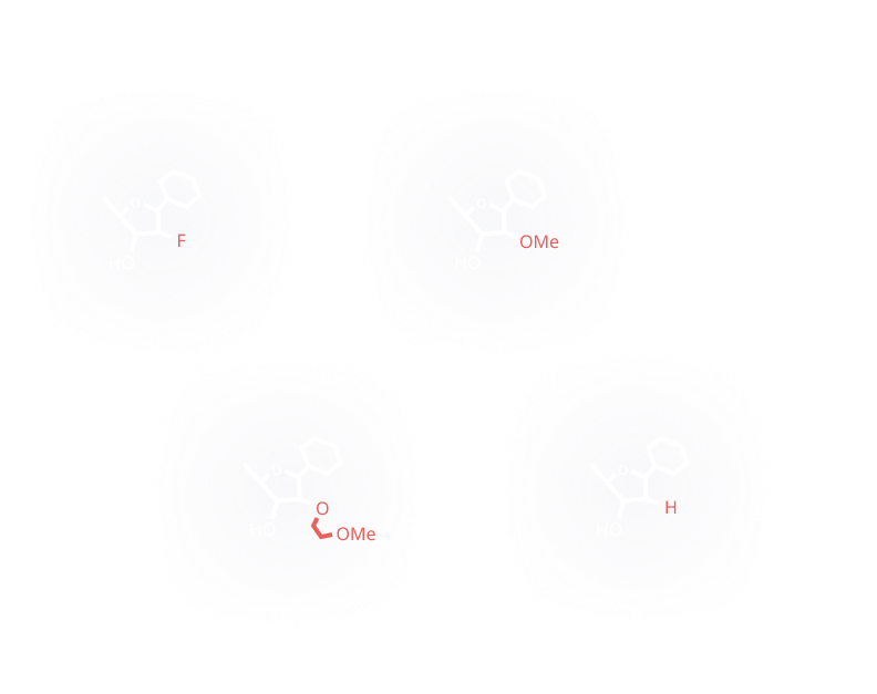 Essential for siRNA therapeutics, the platform can incorporate all standard 2’ modifications including 2’OH, 2’H, 2’OMe and 2’F. Other halogens, locked nucleic acids, and more are also tolerated on the 2’